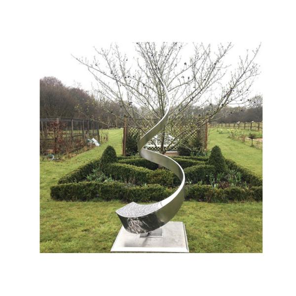 The sculpture is a stainless steel sculpture in swirl shap. This sculpture looks amazing as it is poished to mirror finish. It will create a striking focal point when it is placed outdoor in garden as a landscape. This landscape sculpture can be made to order in size.